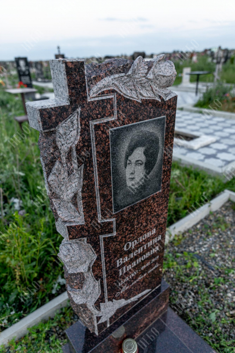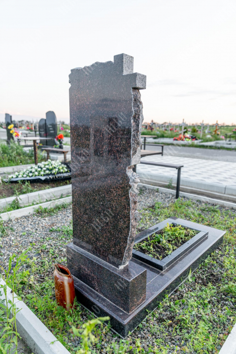 Памятник фрезерный с крестом, открытым надгробием и фигурной стелой, заказать в Константиновской.